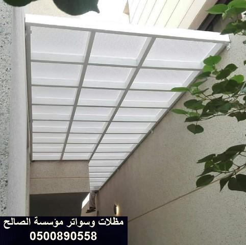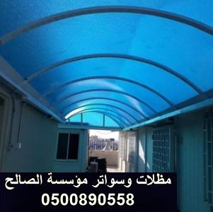 5. مؤسسة مظلات وسواتر الصالح بالرياض تقدم أروع الاشكال البارزة الرائعة الجمالية في خدمة تركيب مظلات لكسان شفافة بأكثر من 25 لون متوفرة بالشركة، يمكنكم الحصول عليها، والإختيار من بينها، ومعرفة كل ما هو جديد ،والمهندسين فقط عليهم التنفيذ .مظلات زجاج