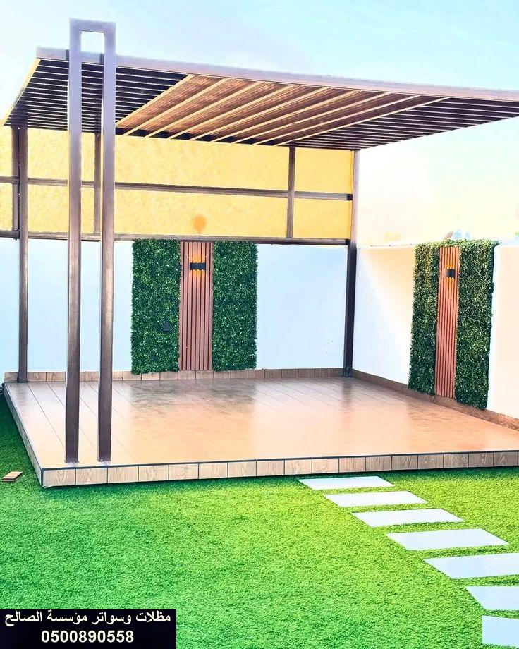 تعد مظلات جلسات حديد الرياض من أكثر الأنواع متانة، حيث توفر قوة تحمل عالية ومقاومة للعوامل الجوية. يمكن تصميمها بأشكال فخمة تناسب الفلل والاستراحات الراقية.
