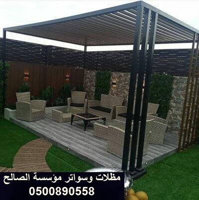 بأجمل الأشكال والالوان تنفرد مظلات الصالح بجده بتوفير أجمل واحدث التصميمات والاشكال الهندسية الرائعة والمتميزة لكافة أنواع المظلات للحدائق المنزلية حيث الجودة العالية والكفاءة والتميز في نوعية الخامات المستخدمة في تركيب المظلات بمختلف الأنواع والتي يمكن تركيبها في أماكن كثيرة ومتعددة ومنها تركيب مظلات اسطح وللمسابح والبكونات.مظلات احواش